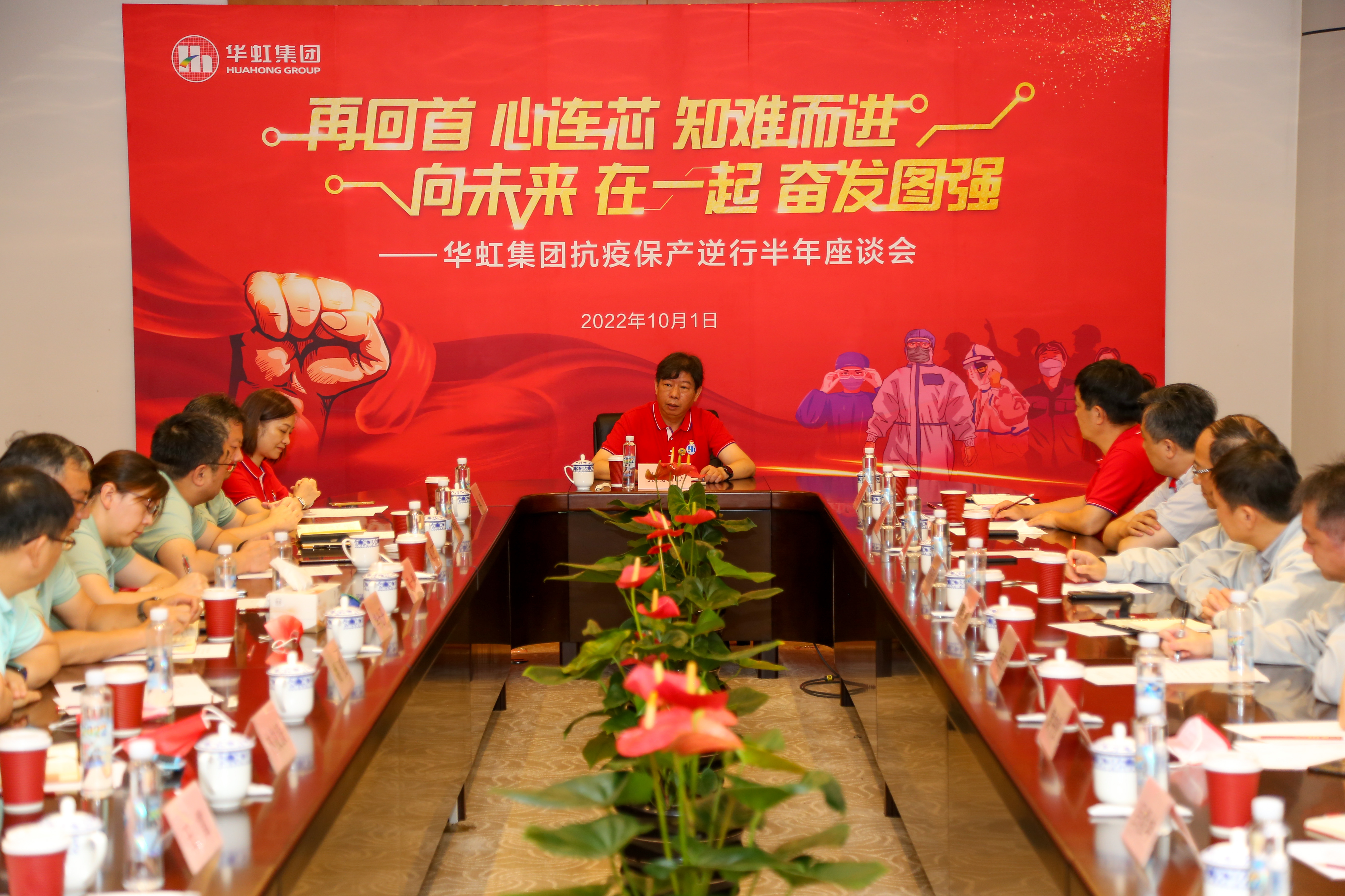 兩大制造平臺(tái)抗疫保產(chǎn)逆行半年座談會(huì)。上午,在華虹集團(tuán)發(fā)源地——華虹一廠召開(kāi)“再回首,心連芯,知難而進(jìn);向未來(lái),在一起,奮發(fā)圖強(qiáng)”兩大制造平臺(tái)抗疫保產(chǎn)逆行半年座談會(huì)。集團(tuán)領(lǐng)導(dǎo)及兩大制造平臺(tái)的黨政工團(tuán)負(fù)責(zé)人、工廠廠長(zhǎng)齊聚一堂,深情回顧,凝聚共識(shí),激情展望踔厲未來(lái),進(jìn)行了充分交流。