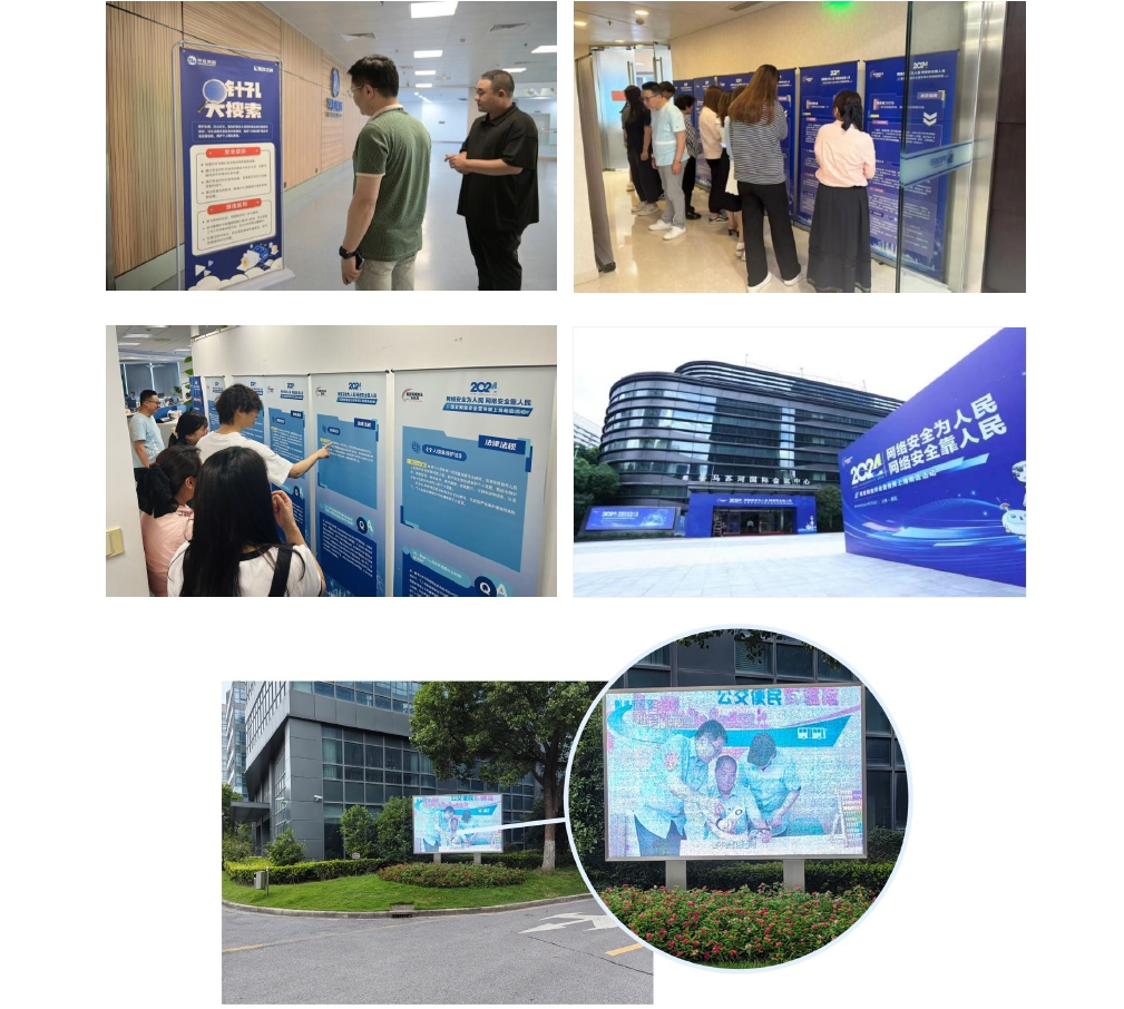 依托云工會(huì)平臺(tái)開(kāi)展以網(wǎng)絡(luò)安全宣傳為主題的線上學(xué)習(xí)活動(dòng),圍繞《網(wǎng)絡(luò)安全法》《數(shù)據(jù)安全法》等5個(gè)主題開(kāi)展知識(shí)競(jìng)答,激發(fā)員工學(xué)習(xí)網(wǎng)絡(luò)安全知識(shí)的積極性,檢驗(yàn)提升員工的網(wǎng)絡(luò)安全防護(hù)水平。線下設(shè)置網(wǎng)絡(luò)安全宣傳展板、海報(bào)、LED屏幕、宣傳手冊(cè),邀請(qǐng)專家講課、組織培訓(xùn)、參觀展覽,設(shè)計(jì)模擬場(chǎng)景查找針孔探頭,提升員工信息安全意識(shí),筑牢個(gè)人信息安全之堤,保護(hù)企業(yè)信息安全。